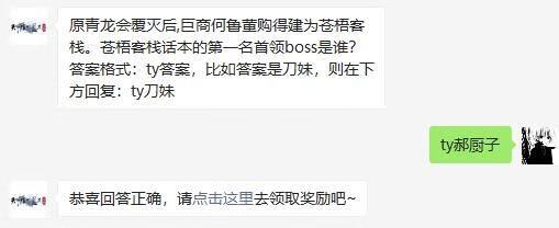 天涯明月刀今天的问题答案分享来啦!今天的问题是更艳遇苍梧客栈的,问到我们:原青龙会覆灭后,巨商何鲁董购得建为苍梧客栈,苍梧客栈话本的第一名首领boss是谁?下面小小编小编带来相关的答案分享,希望可以帮助到大家!