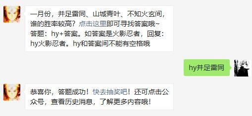火影忍者手游中,游戏中的今日的问题你们回答正确了吗?今天的问题是:一月份,并足雷同、山城青叶、不知火玄间,谁的胜率较高?下面小小编小编为大家带来今天的问题答案分享,还不知道的小伙伴快随小小编小编一起来看看吧!