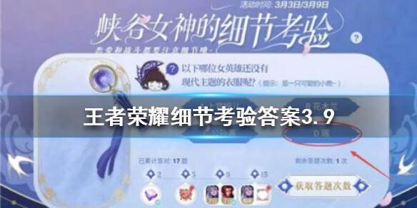 王者荣耀手游中,游戏中的峡谷考验细节问题已经更新了,还是三个小问题,那么正确答案是什么呢?下面小小编小编为大家带来游戏中关于3.9细节考验答案分享,想知道的玩家快随小小编小编一起来看看吧!希望可以帮助到大家!